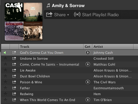 That’s a pretty melancholy playlist – makes me want to whittle something…with bitter tears in my eyes. Lovely though!